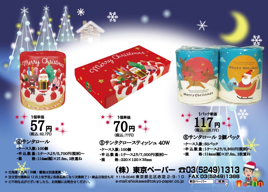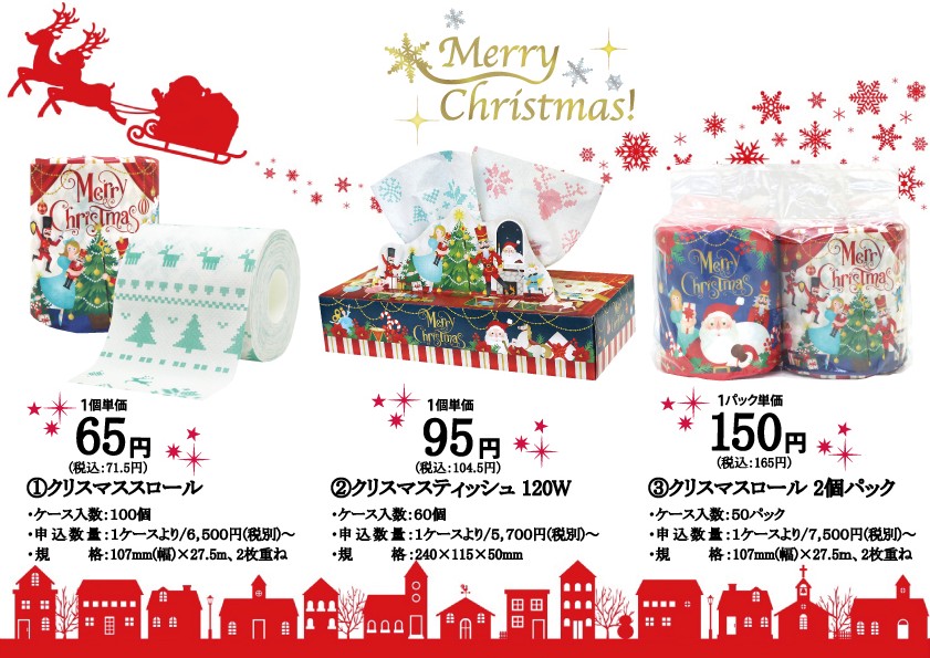 クリスマス用ボックスティッシュ・トイレットペーパー